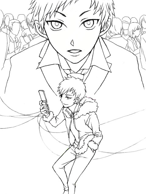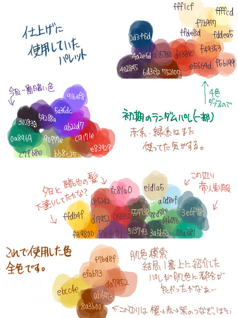この時点で、まず魔王サイドと道化師サイドで描くということが決定し、その次のやりとりで、お互いの線画を交換して色を塗りあうということで、合作の要領はまとまりました。
