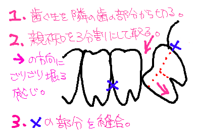 ちょっとグロイ気もするので、抜歯の内容は続きに押し込めます。